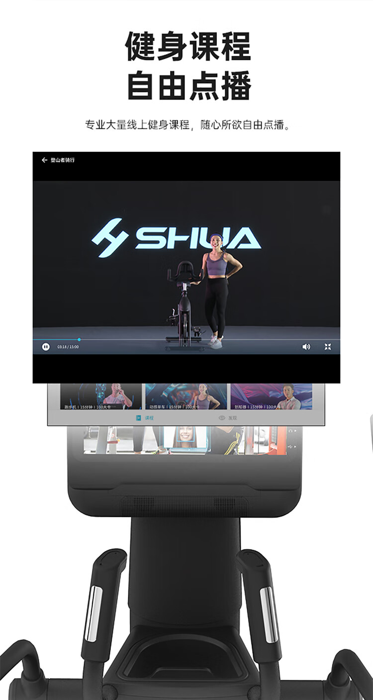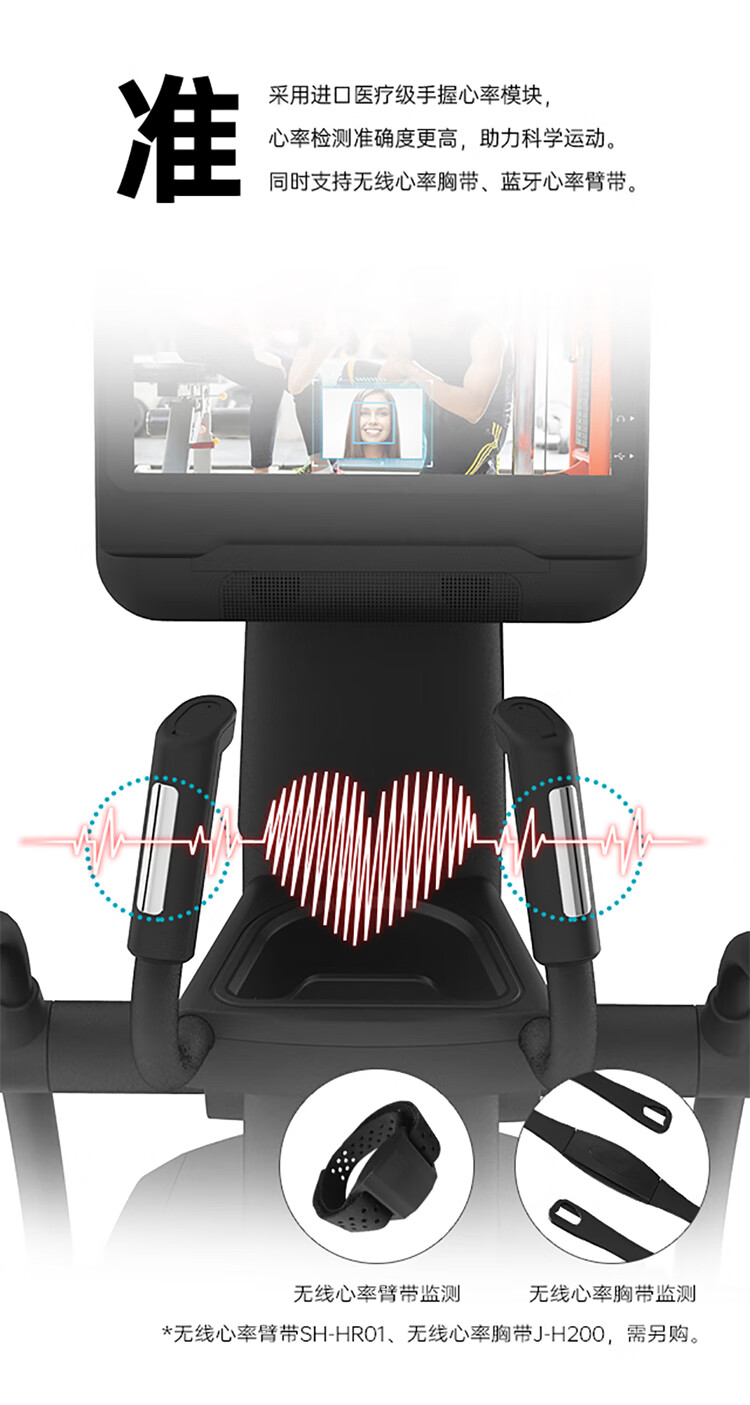 舒華立式商用健身車SH-B9100U(V10)觸屏版擁有超大顯示和操作屏幕, 可以任意設(shè)置阻力、時間和距離等參數(shù),還可以即時顯示心跳和轉(zhuǎn)速等數(shù)據(jù),同時,SH-B9100U提供多項科學運動處方,更輕松掌握運動節(jié)奏。