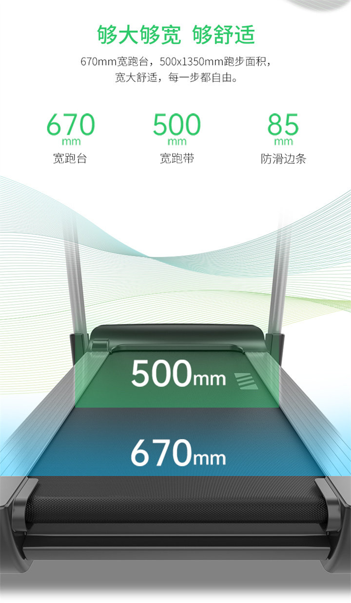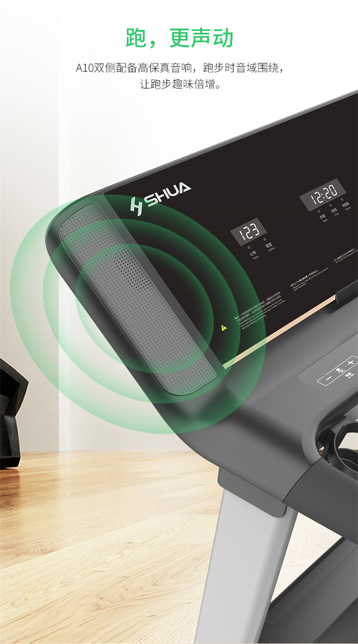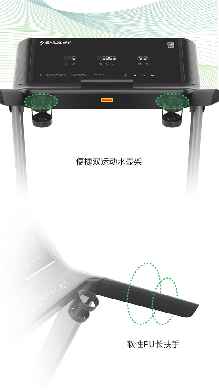 舒華家用跑步機SH-T5100持續(xù)馬力達1.25HP,具有500×1350mm的跑臺,運用無線心率接收模塊監(jiān)測心率,運用6位硅膠減震設計,最大承重是126kg,可以滿足大多數(shù)家庭的使用。